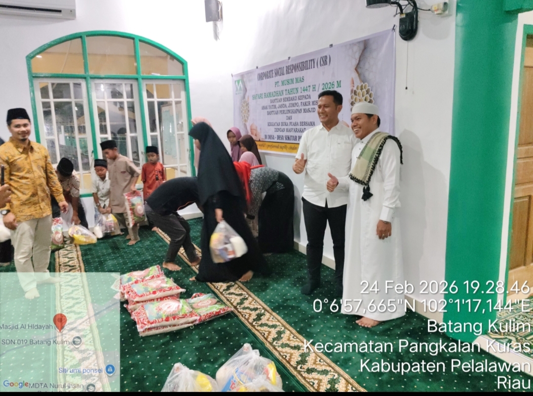 PANGKALAN KURAS,CAKAPLA.COM– Batang Kulim – Dalam suasana penuh kebersamaan di bulan suci Ramadan, PT Musim Mas menggelar kegiatan buka puasa bersama masyarakat Desa Batang Kulim sekaligus menyalurkan bantuan sebanyak 65 paket sembako kepada anak yatim, janda, orang tua jompo, dan warga kurang mampu,serta peralatan masjid. Selasa (24/02/2026).